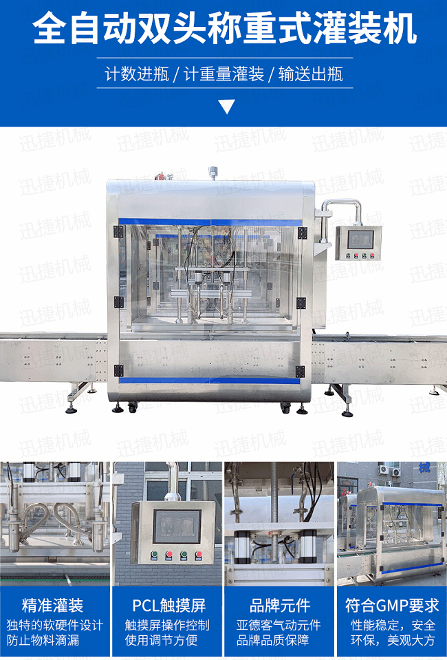8、每個(gè)灌裝頭均有稱重和反饋系統(tǒng),可對(duì)每個(gè)頭的灌裝量進(jìn)行設(shè)置和微量調(diào)整。