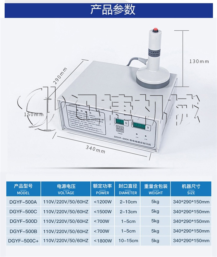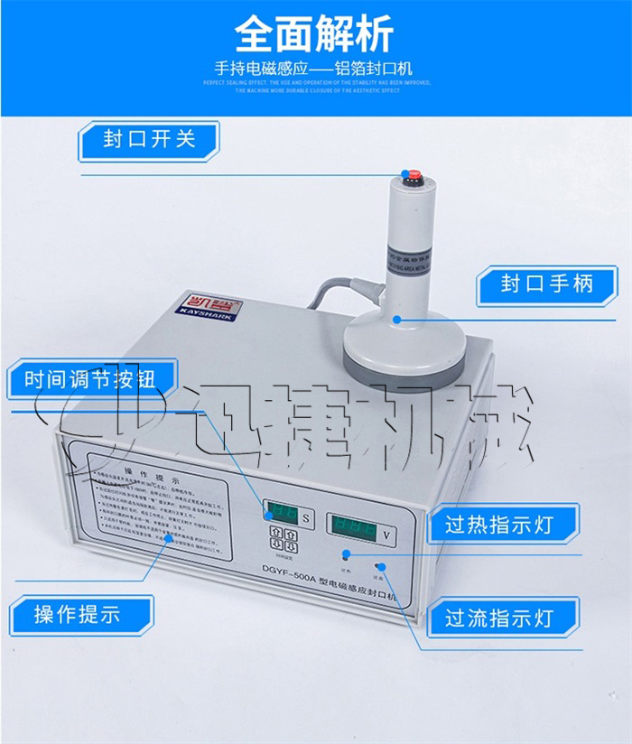 本手持式電磁感應(yīng)鋁箔封口機(jī)是利用電磁感應(yīng)的原理,將瓶口上的鋁箔片瞬間產(chǎn)生高熱,然后熔合在瓶口上,使達(dá)到封口的功能。具有良好的防潮、防霉、防偽作用,起到延長物品保存周期的目的。封口容器的材質(zhì)可以是聚乙(PE)、聚丙烯(PP)、聚酯(PET)、聚苯乙烯(PS)、ABS以及玻璃等,不能用于金屬瓶體及瓶蓋。(本公司同時提供各種材料感應(yīng)鋁箔膜)。